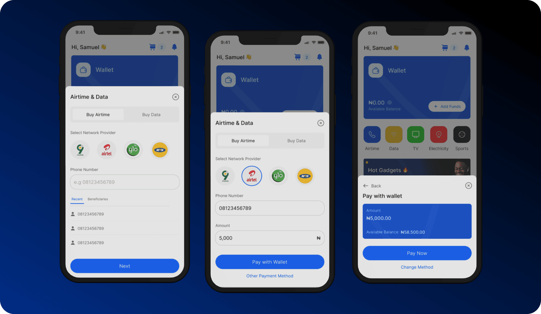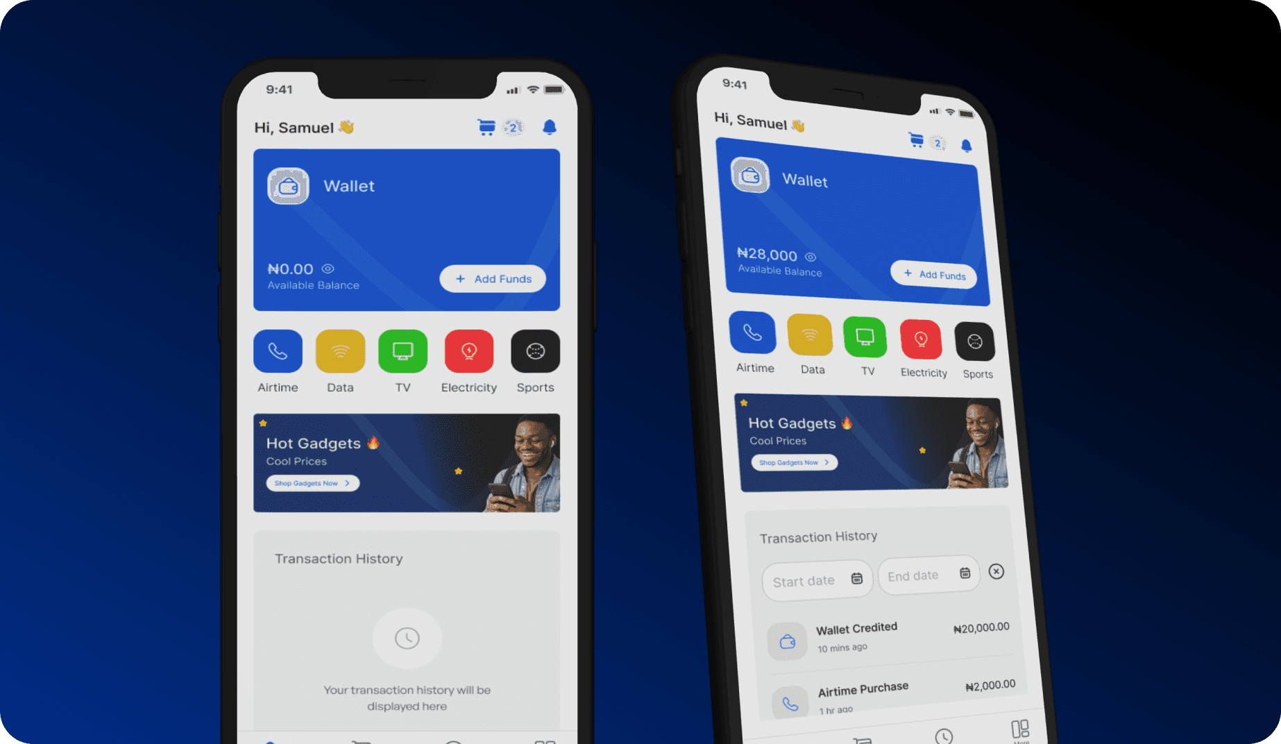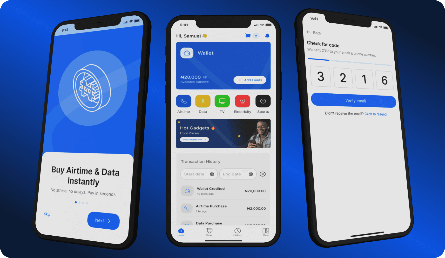 The BillPayment app was designed to bring all of these actions into one simple, accessible mobile experience, allowing users to pay bills, buy data and airtime, manage subscriptions, fund a wallet, and shop gadgets, all from a single platform.