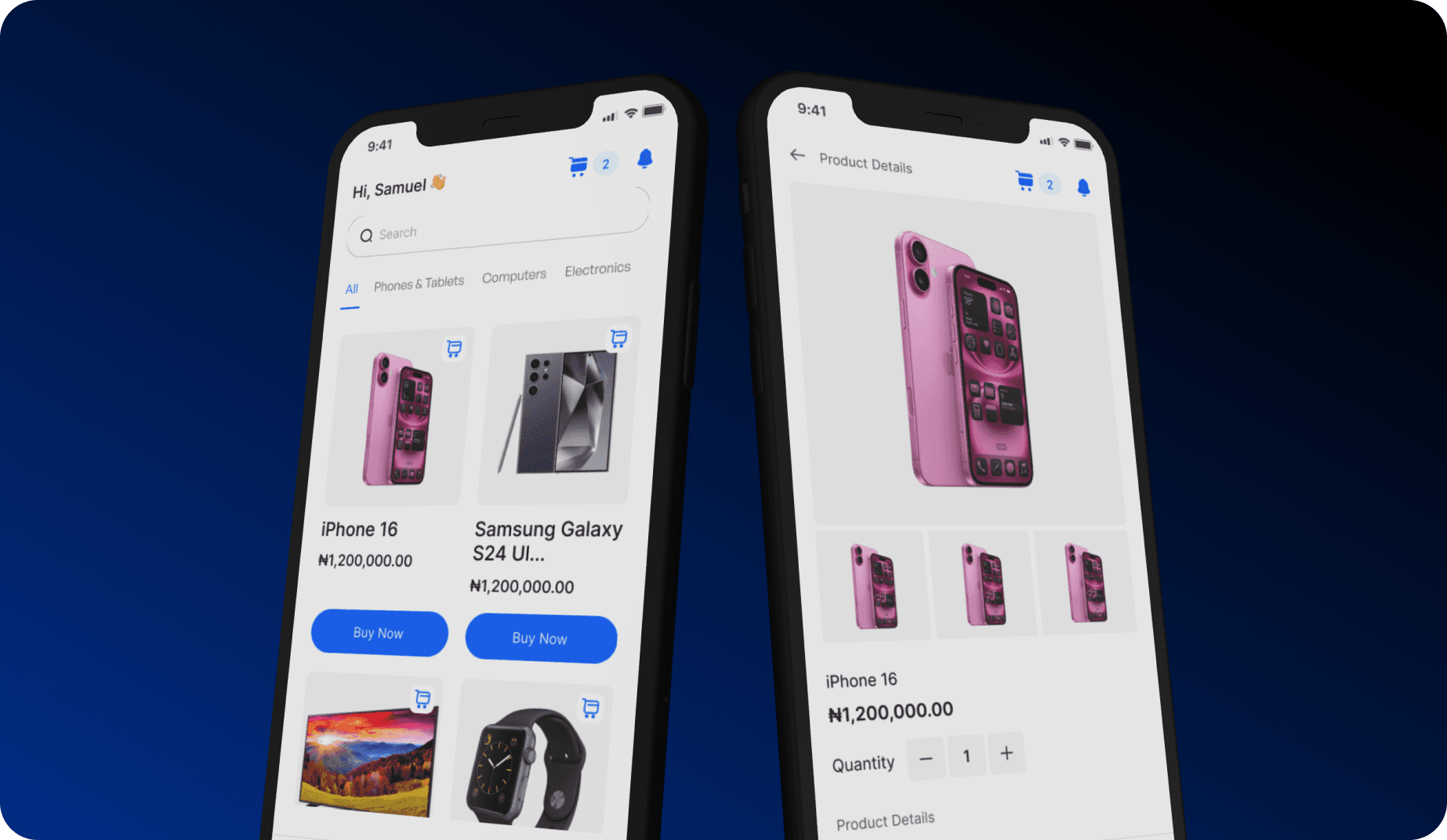 Beyond bill payments, the app includes an e-commerce experience for purchasing gadgets.